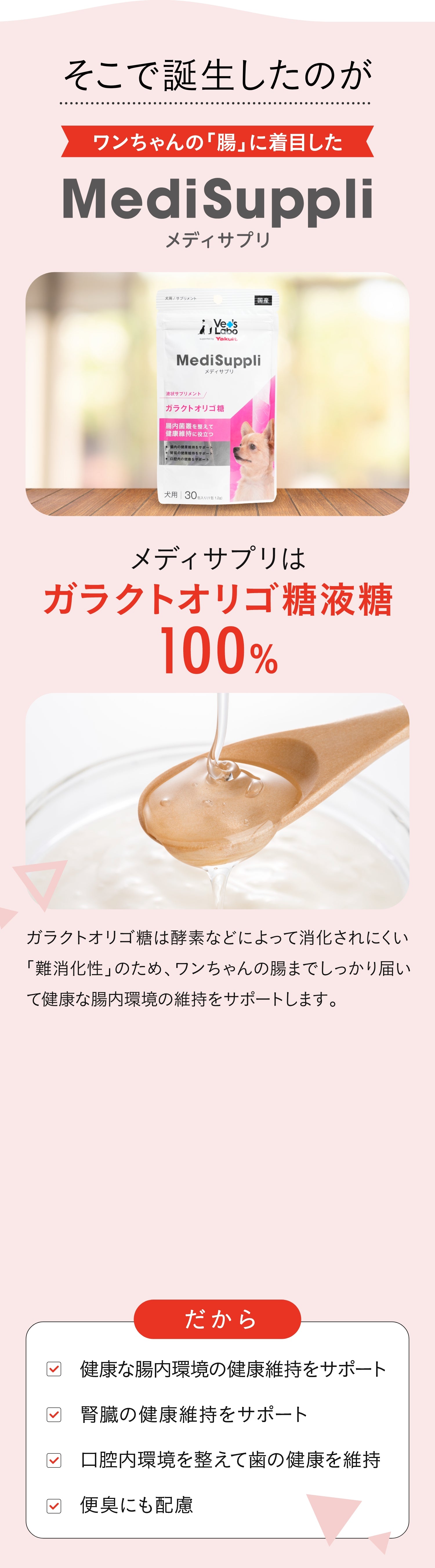 ガラクトオリゴ糖の自然な甘みはワンちゃんも大好き。