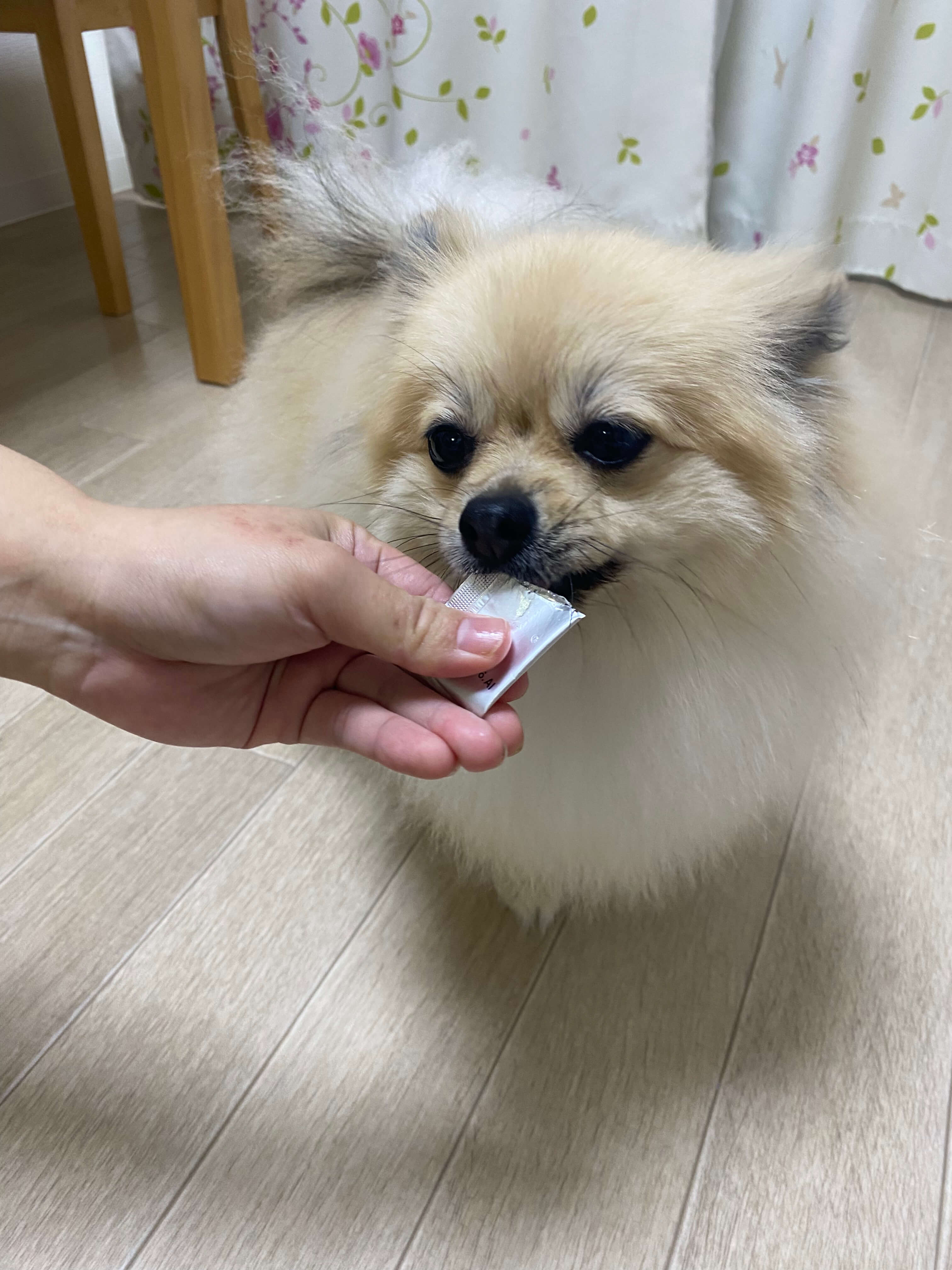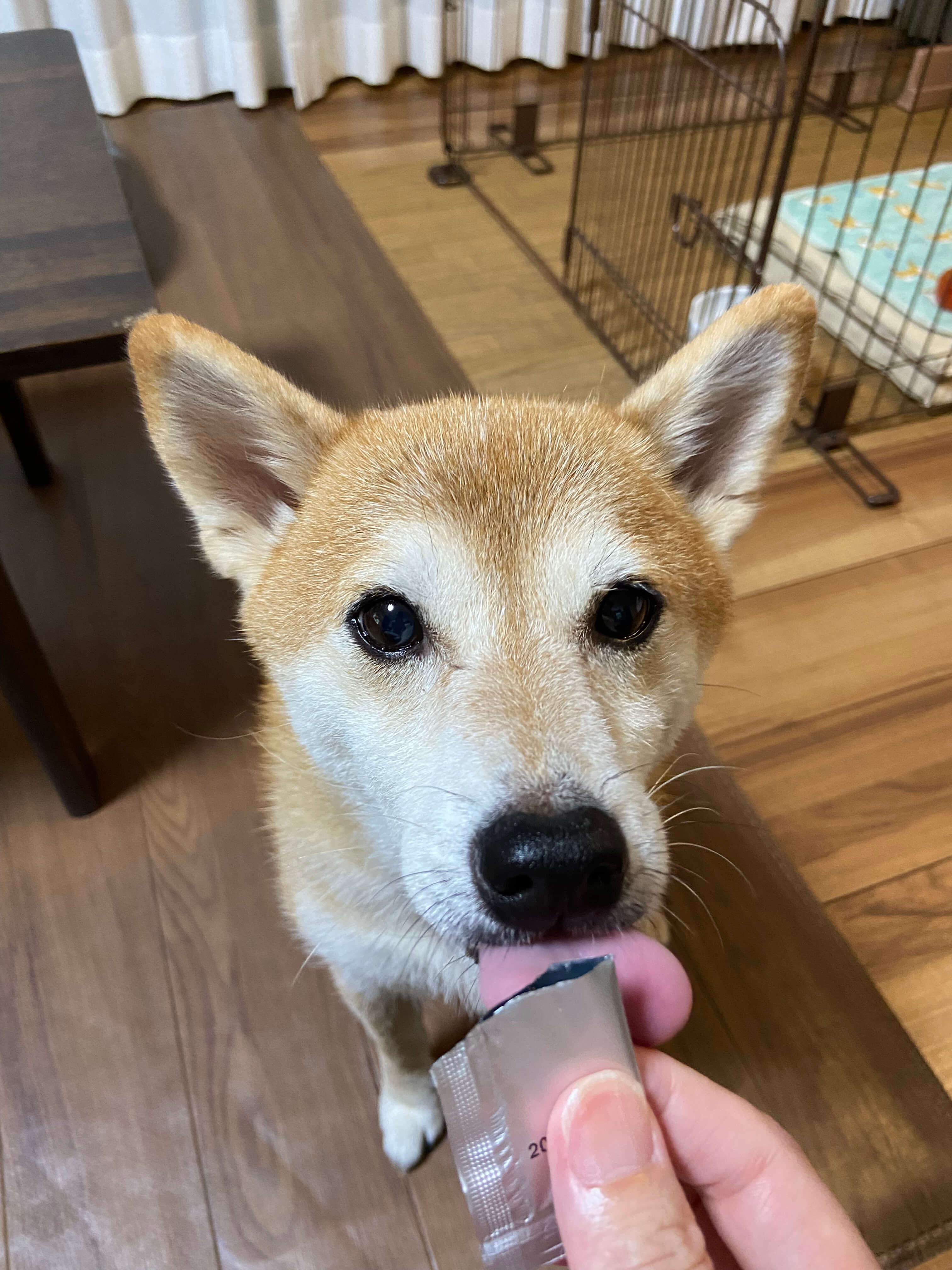 嬉しそうにペロペロ舐めて、終わってももっと食べたいと欲しがります